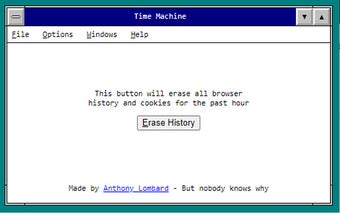 Time Machine is a Chrome add-on developed by anthony.isalive that allows users to erase their browser history and cookies with just one click. With a retro-styled interface reminiscent of Windows 3.1, this add-on brings a nostalgic touch to the task of clearing browsing data.